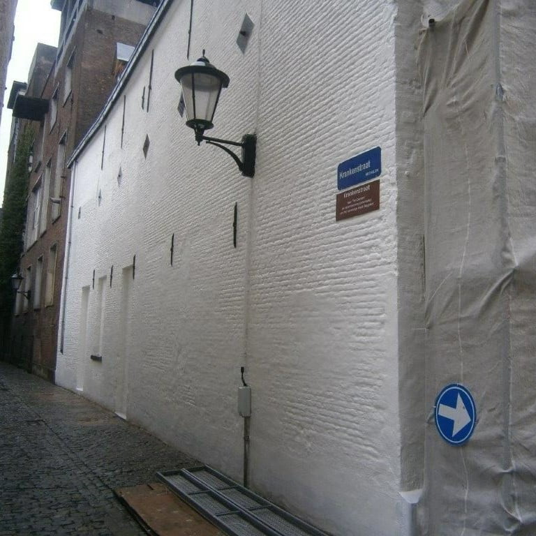 De gevel werd gekaleid en geschilderd, waardoor het gebouw terug even fris uitziet als voorheen.
